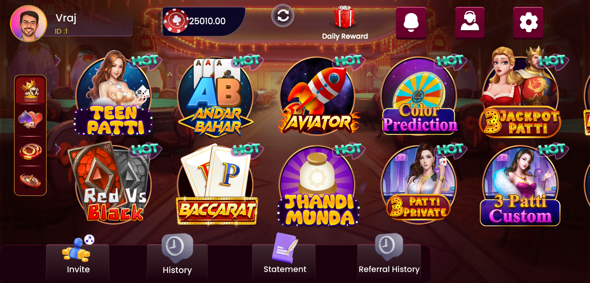 Daily Bonus: Claim Free chips everyday in Spin Gold. Win a daily bonus of up to ₹30,000 in chips!