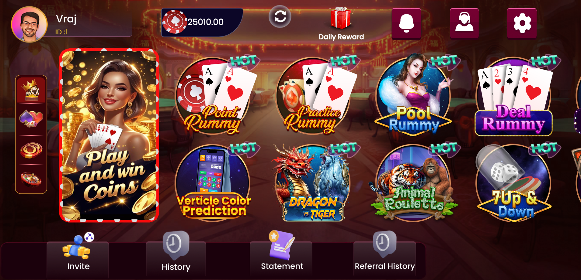 Daily Bonus: Claim Free chips everyday in Spin Gold. Win a daily bonus of up to ₹30,000 in chips!